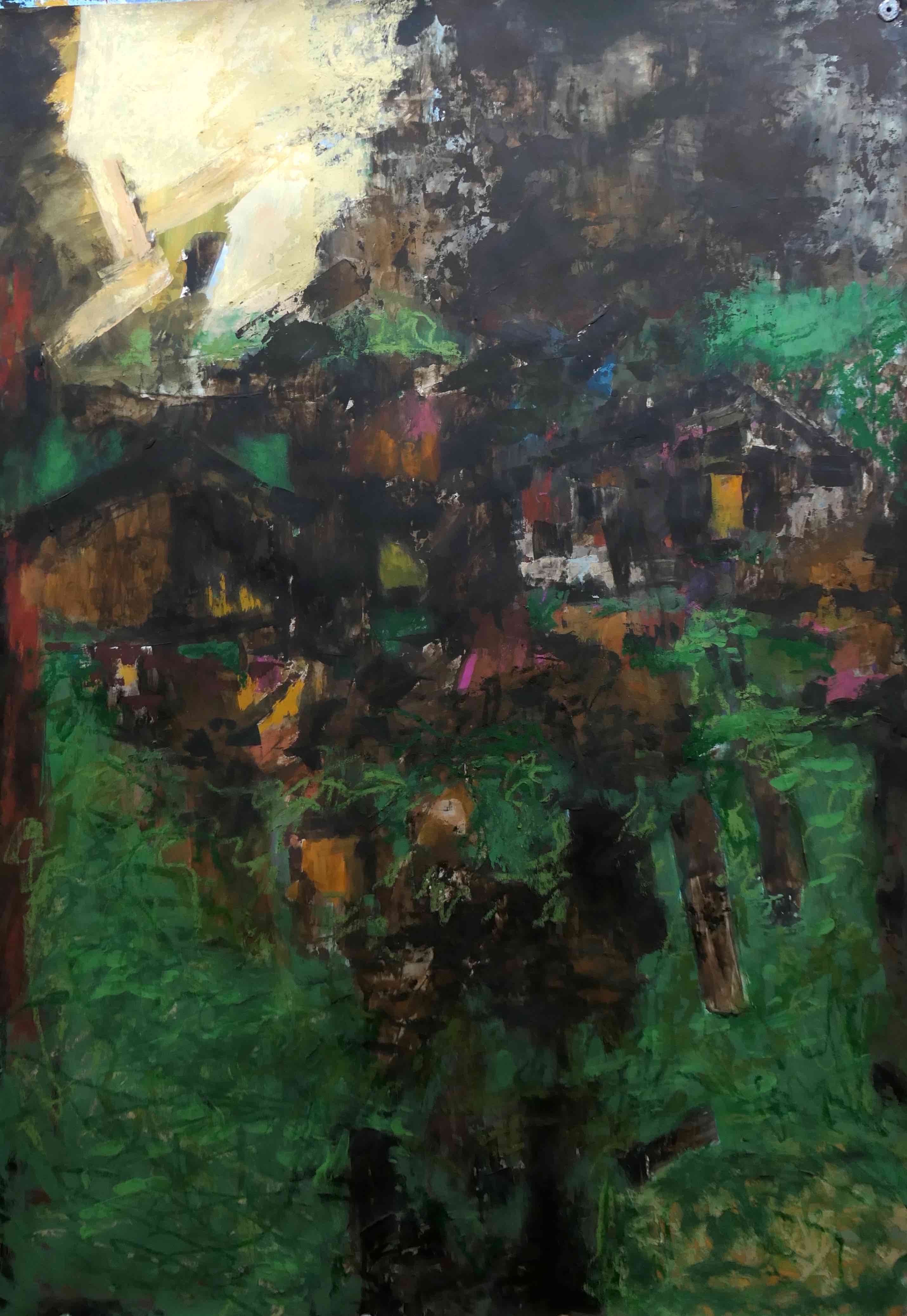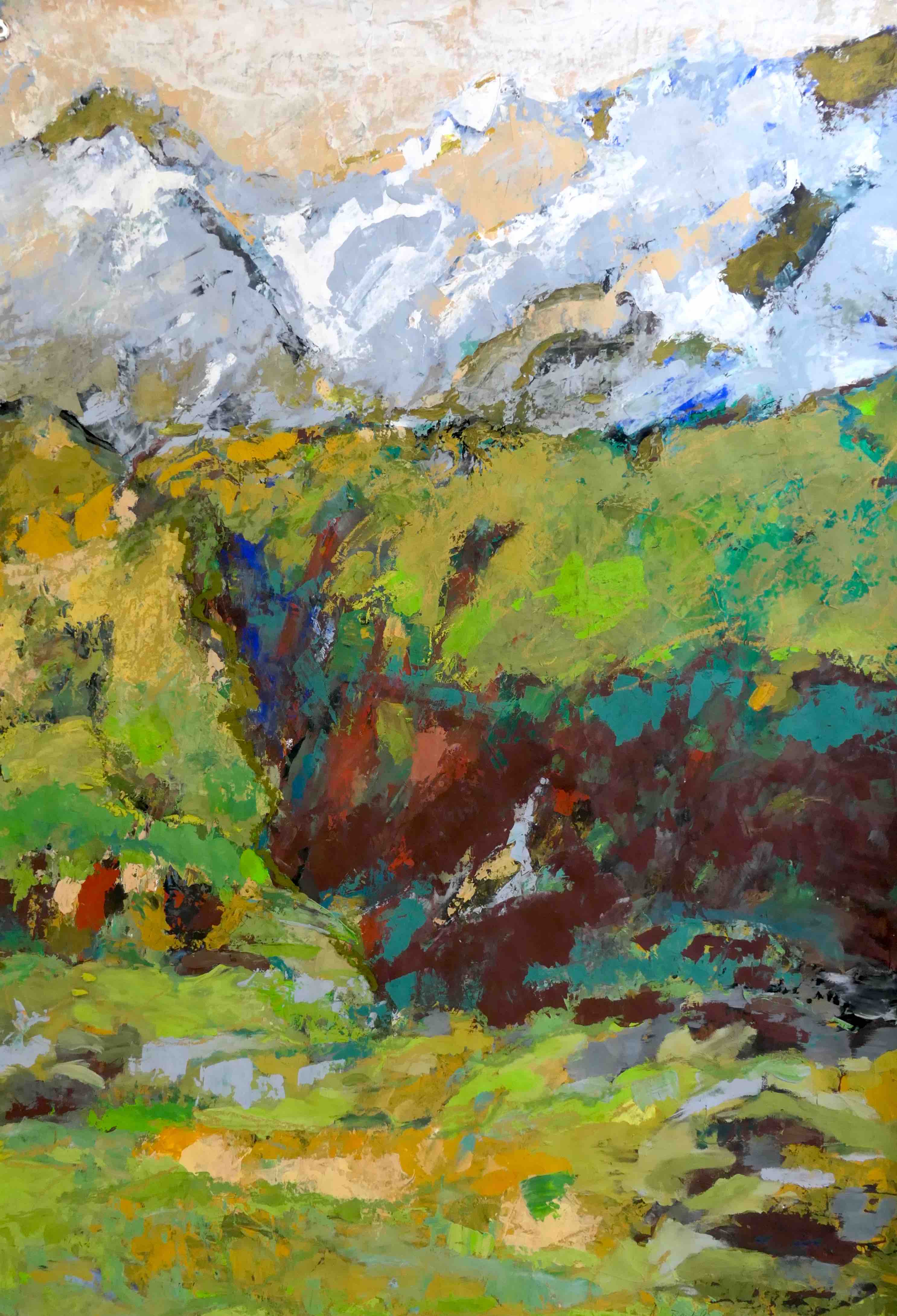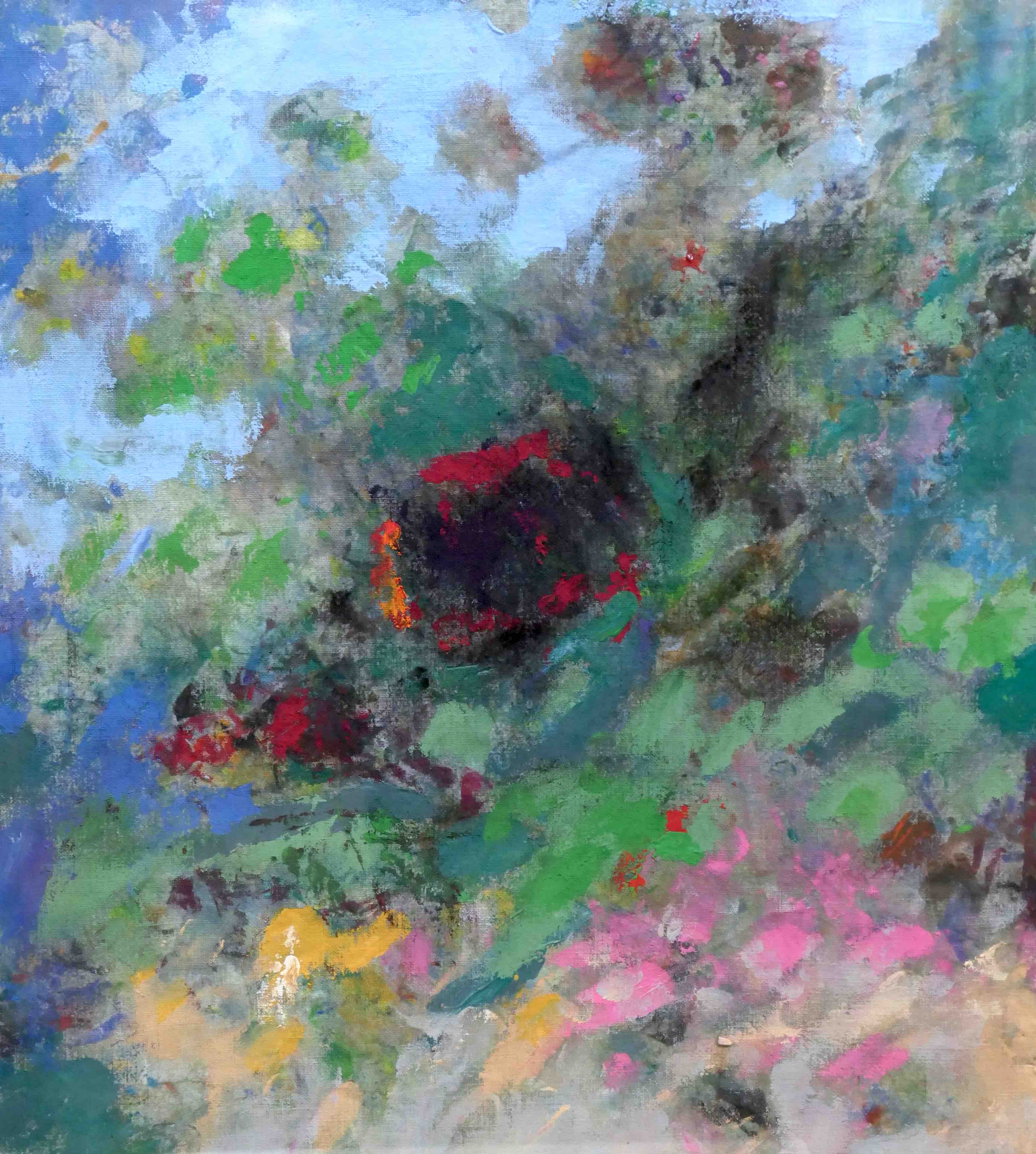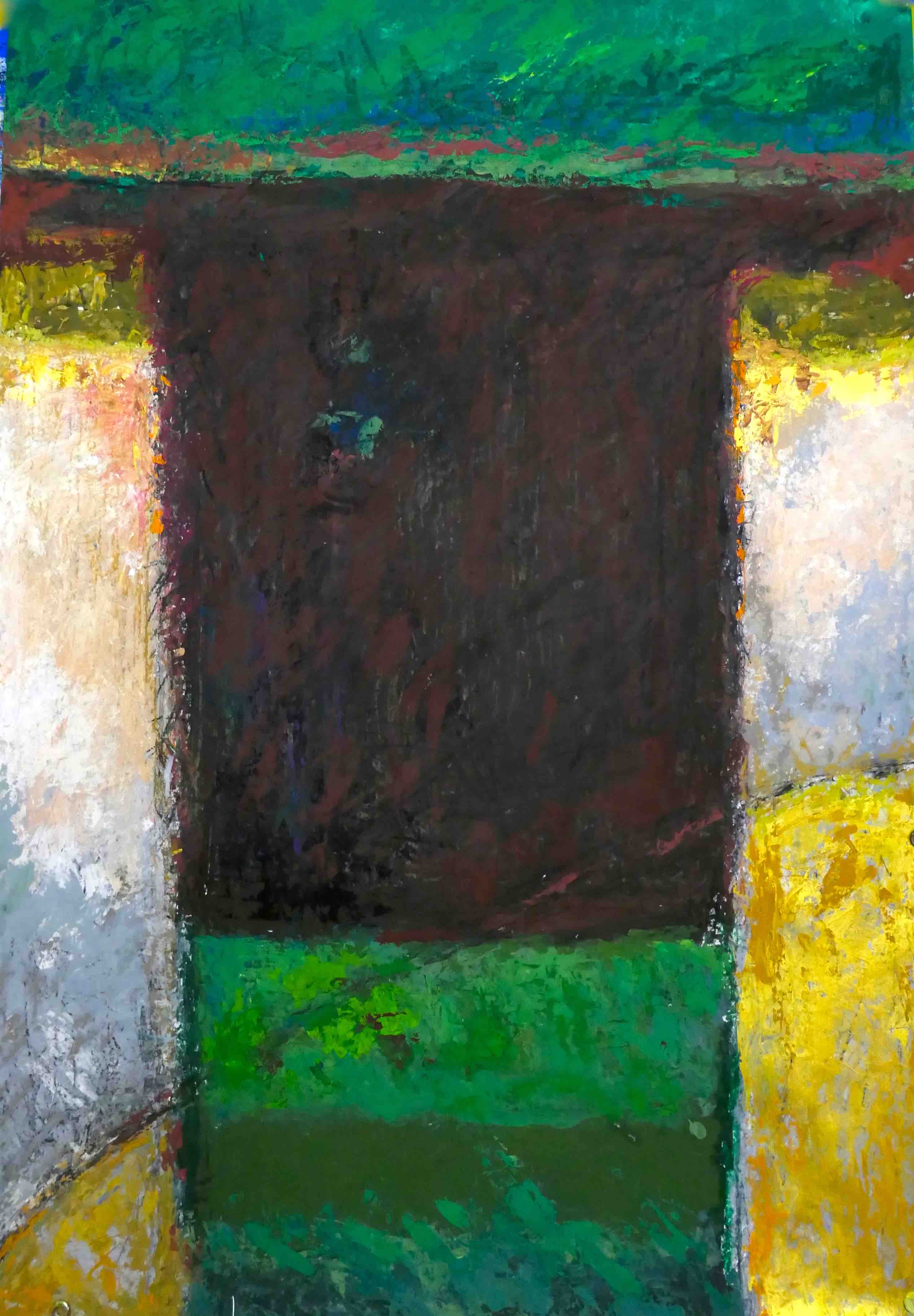 Sie sind „hintergründige“ Bilder, etwa „Grün“ als vom Wesen her gesagt, das aber letztlich nicht definiert werden kann. Farbe primär. Aber auch Struktur, Dynamik, Energie, Lineares und Flächiges sind spontan eingesetzte Ausdrucksmittel.
