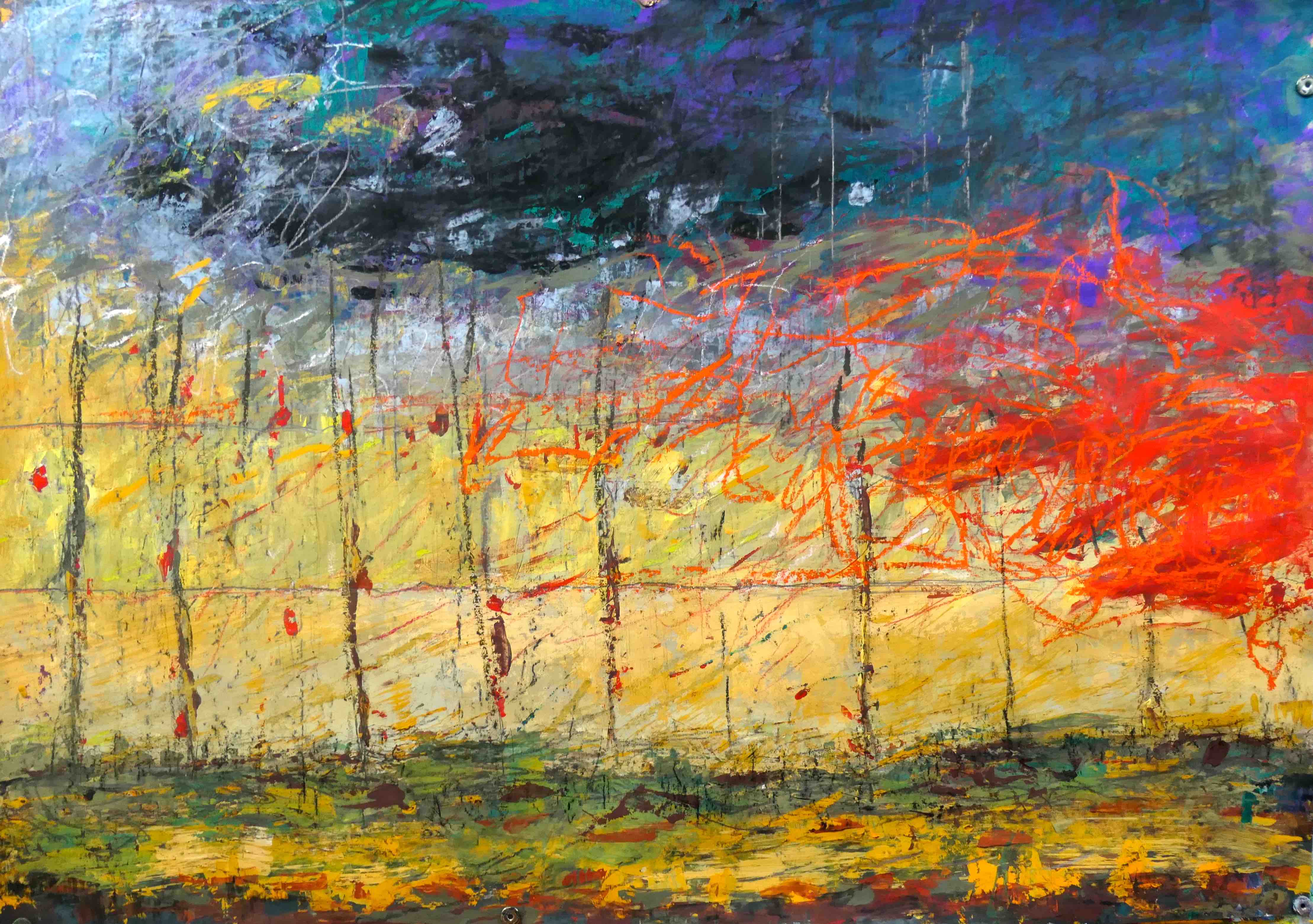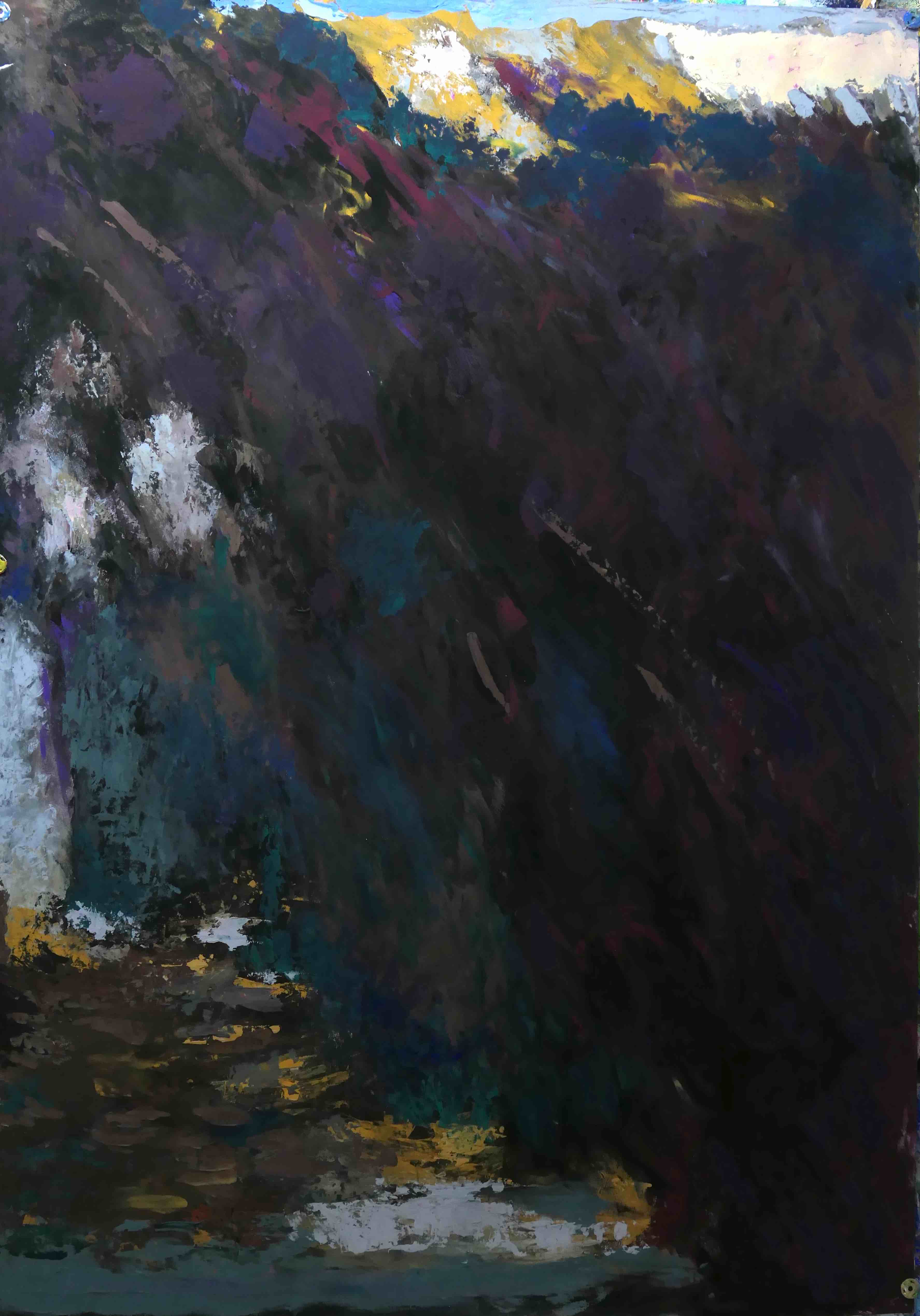 Die Bilder markieren immer auch den „Ort“, an dem ich mich befinde, Das Tun setzt mich in Beziehung zum Jetzt. Ich überlasse mich dem Material , das den Ausdruck trägt, durch den ich mich „mitteilen“ will.