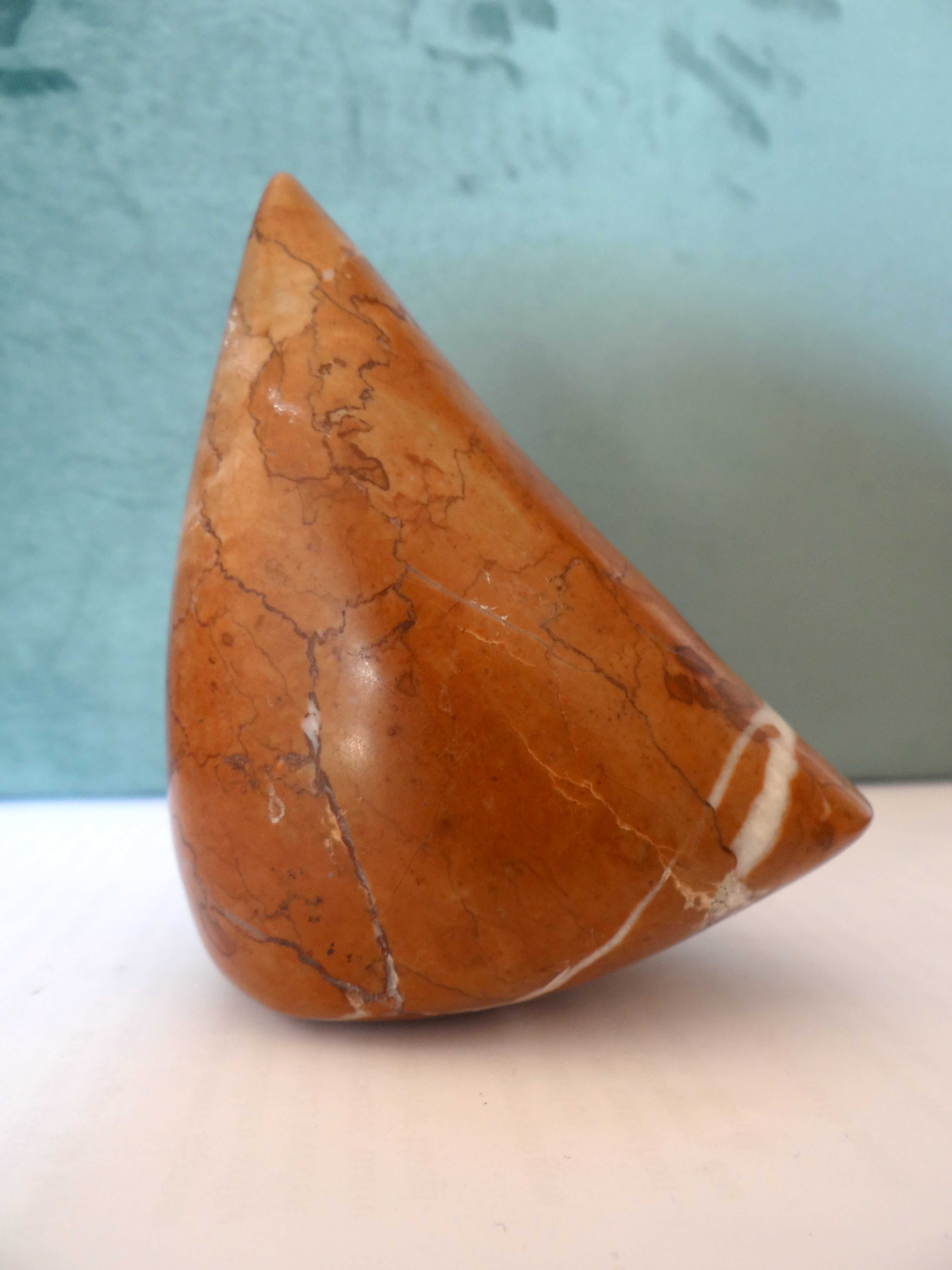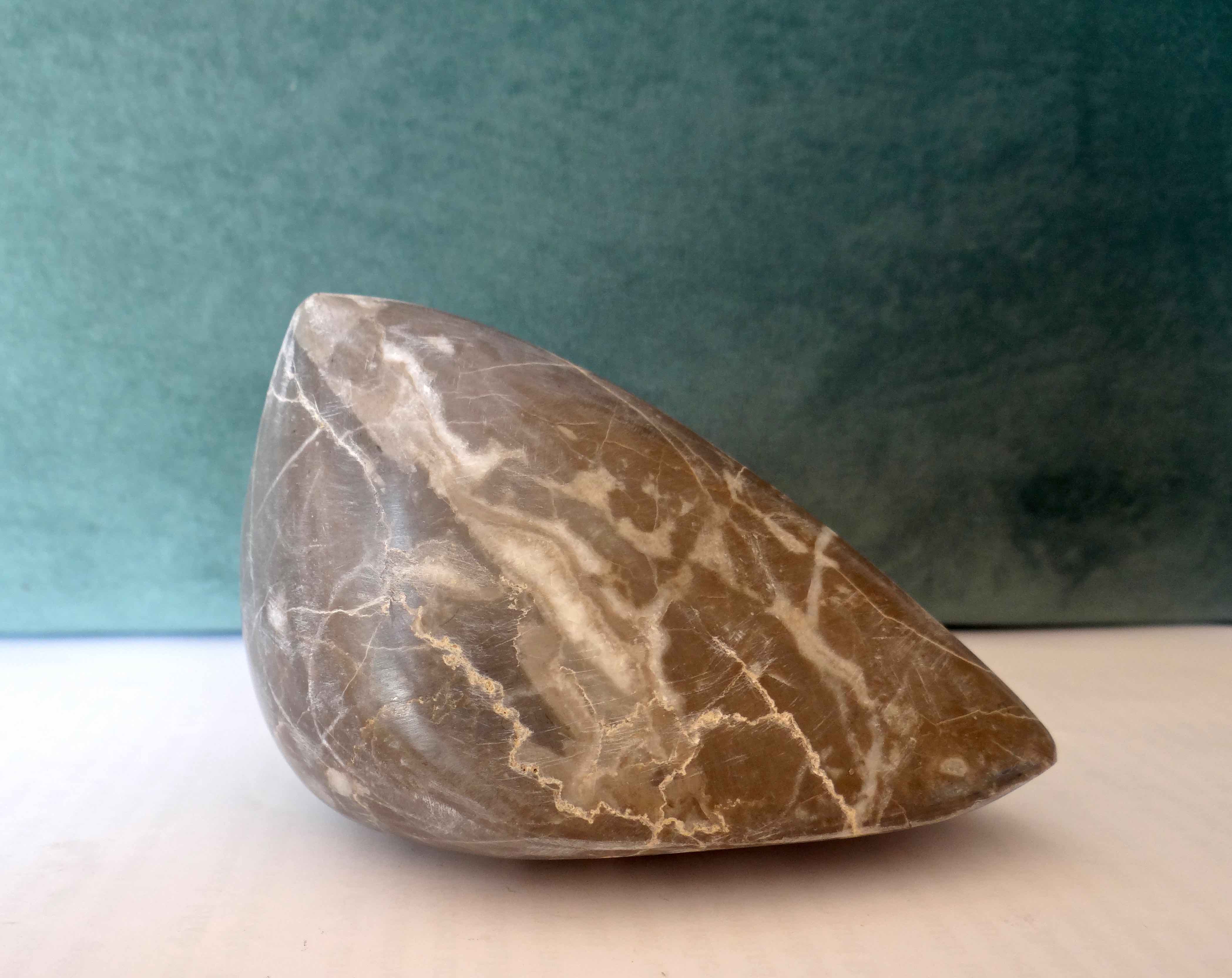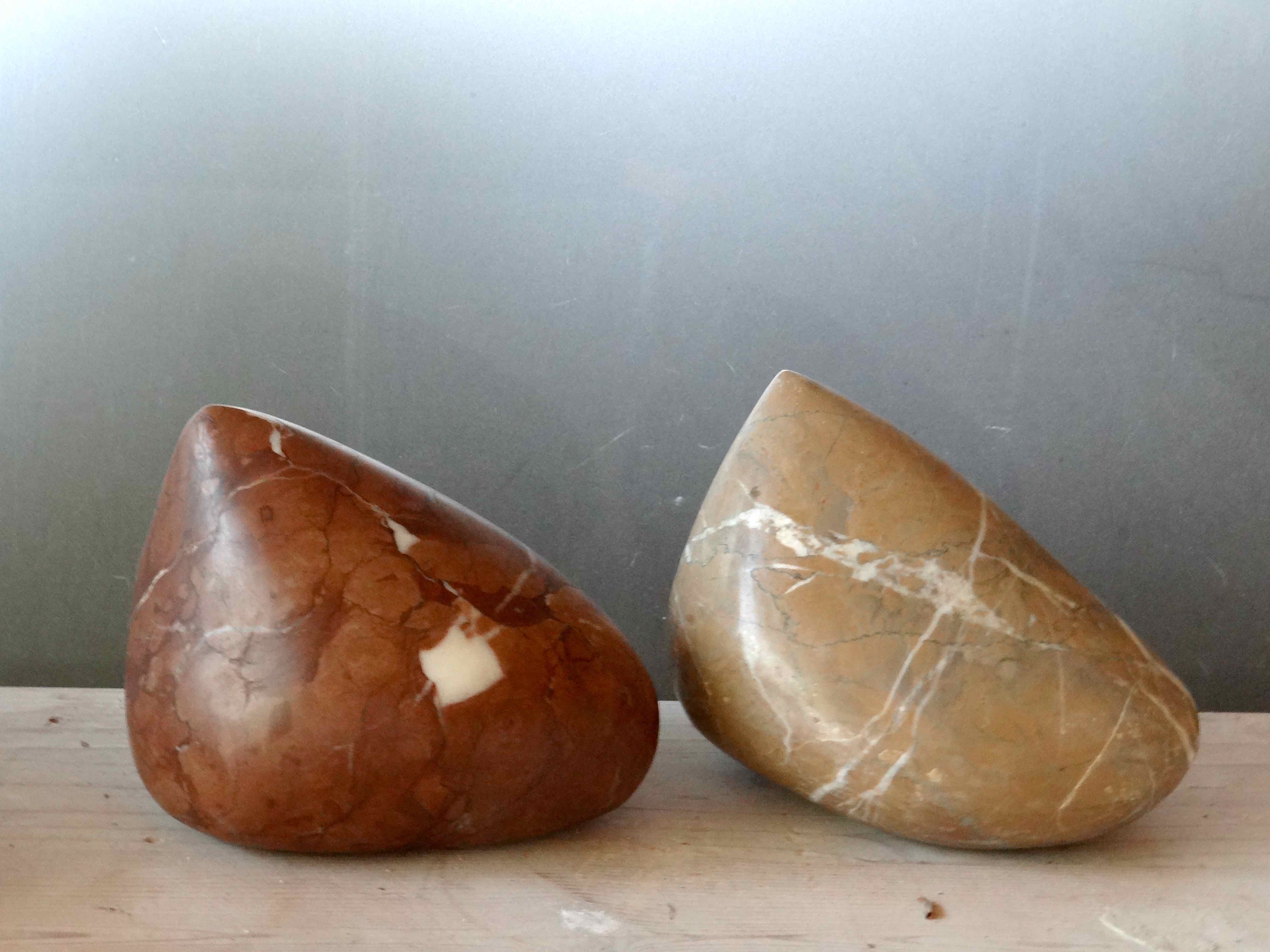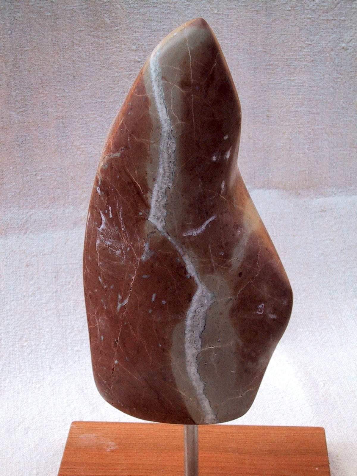 Die beim freien Herumschweifen im Bergland im Abseits gefundenen Steine werden zum Ausgangspunkt dienender Schleifarbeit an der schon fast fertigen Form. Ich fand Steine, in deren Gestalt ich die Kraft von Idolen spürte oder die Form von Vögeln sah.